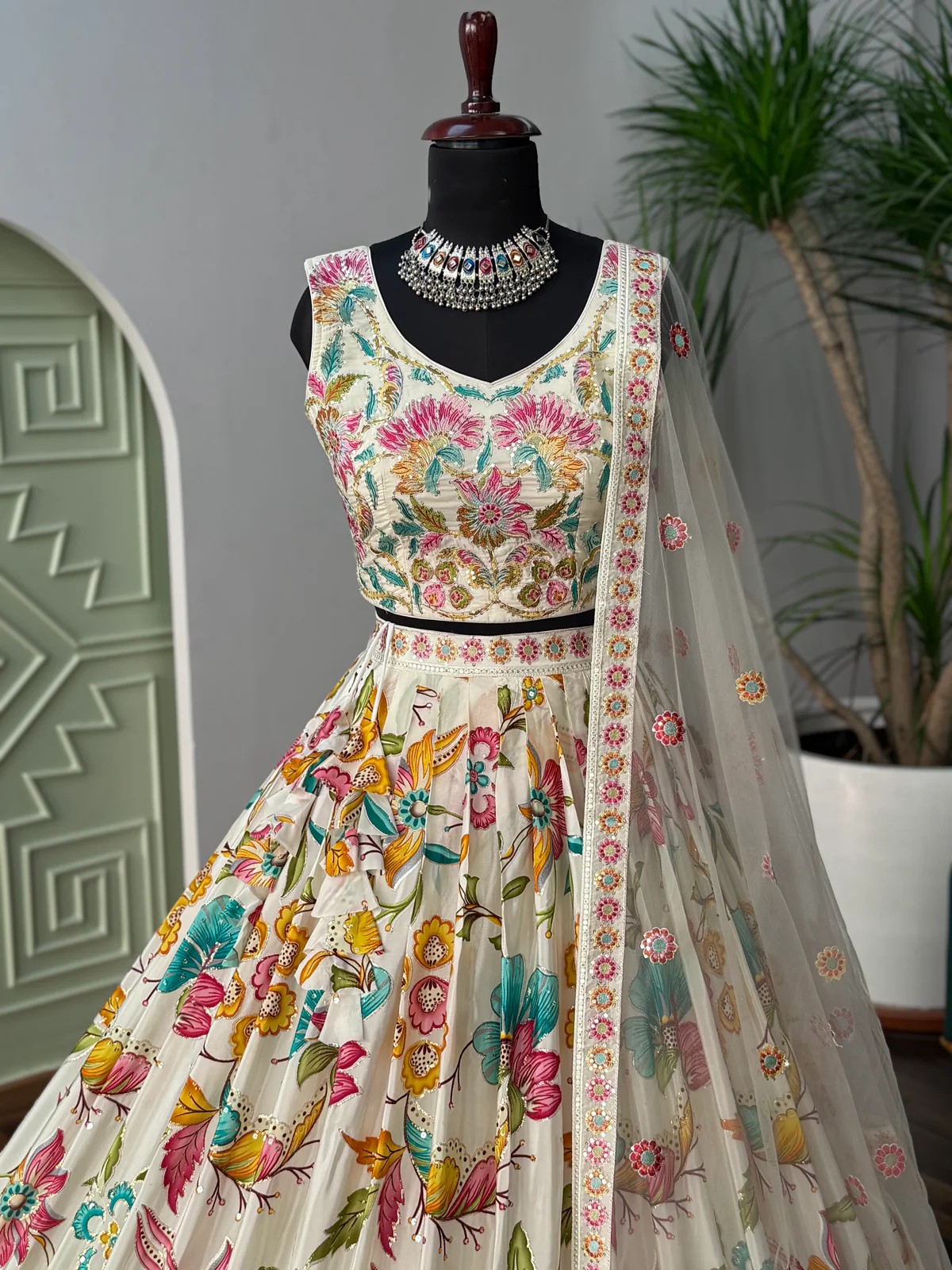 Be the first to review “Floral and Sequence Embroidered Designer Lehenga”