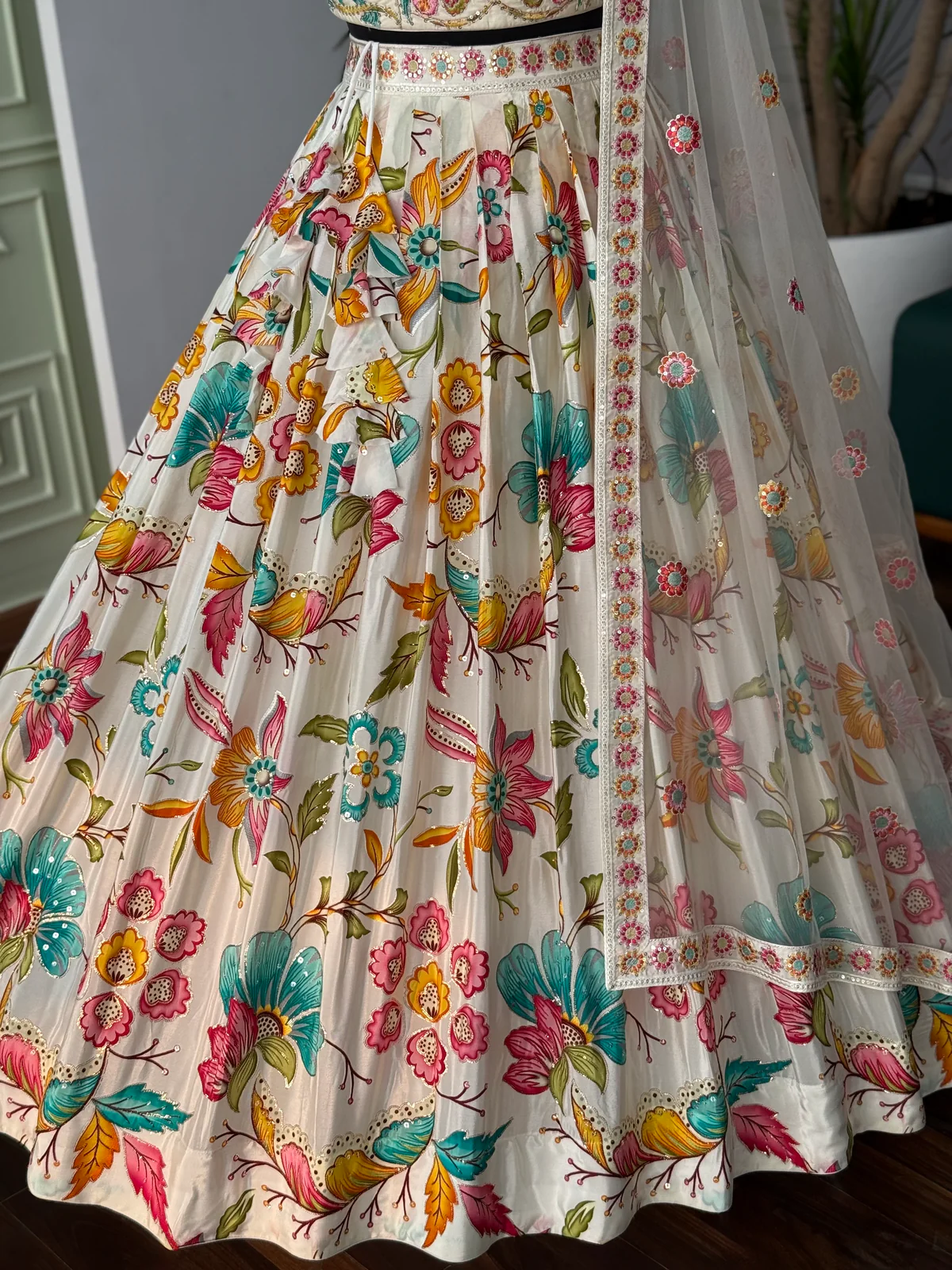 Floral and Sequence Embroidered Designer Lehenga